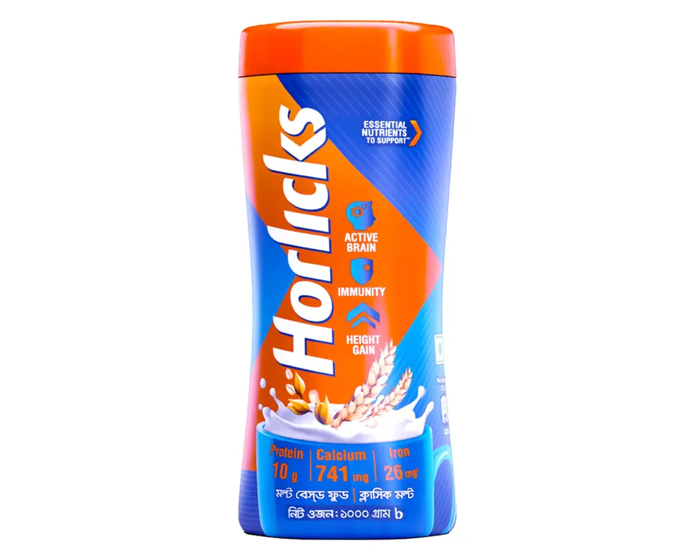 পণ্যের নাম: Horlicks Classic Malt পরিমাণ: ১০০০ গ্রাম (১ কেজি) প্যাকেজিং: প্লাস্টিক জার ধরণ: মাল্ট-ভিত্তিক হেলথ ড্রিংক পাউডার সাধারণত দুধের সাথে মিশিয়ে পান করা হয় এবং শিশু ও বড়দের পুষ্টি সাপোর্টের জন্য ব্যবহৃত হয়।
