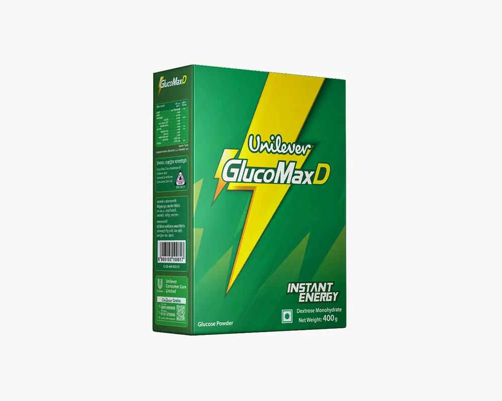 পণ্যের নাম: Gluco Max‑D Powder Drink পরিমাণ: প্রায় ৩৫০ গ্রাম (±৫০ গ্রাম) ধরণ: গ্লুকোজ‑ভিত্তিক পাউডার ড্রিংক — দ্রুত শক্তি ও পুষ্টি জোগানোর জন্য পানীয় হিসেবে ব্যবহার করা হয়। ব্র্যান্ড ব্যাকগ্রাউন্ড: পণ্যটি মূলত Unilever‑এর পরিচিত Glaxose‑D পণ্যটি পুনঃব্র্যান্ড করে GlucoMax‑D নামে বাজারজাত করা হচ্ছে, যা শরীরকে দ্রুত শক্তি সরবরাহ ও ক্লান্তি কমাতে সহায়তা করে।